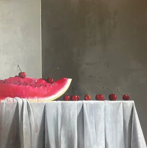 While Namara’s distinctive visual language is unwavering, his work draws heavily from the pictorial traditions of the “Bay Area Figurative School” and magic realism. The legacy of these art movements is evident in the poetic quality of Namara’s style. His mastery of light and the alluring manipulation of depth of field in his paintings create a sustained sense of tension and mystery, hinting at a multitude of meanings. Namara’s works incorporate psychologically potent symbolism, and his still lifes, in particular, evoke a disquieting atmosphere, with objects bathed in contrasting light and shadows. The act of still life painting is a constant pursuit of beauty in the ordinary moments of life. Each painting serves as an elegant invitation to contemplate the exquisite qualities of time and its relationship with light.