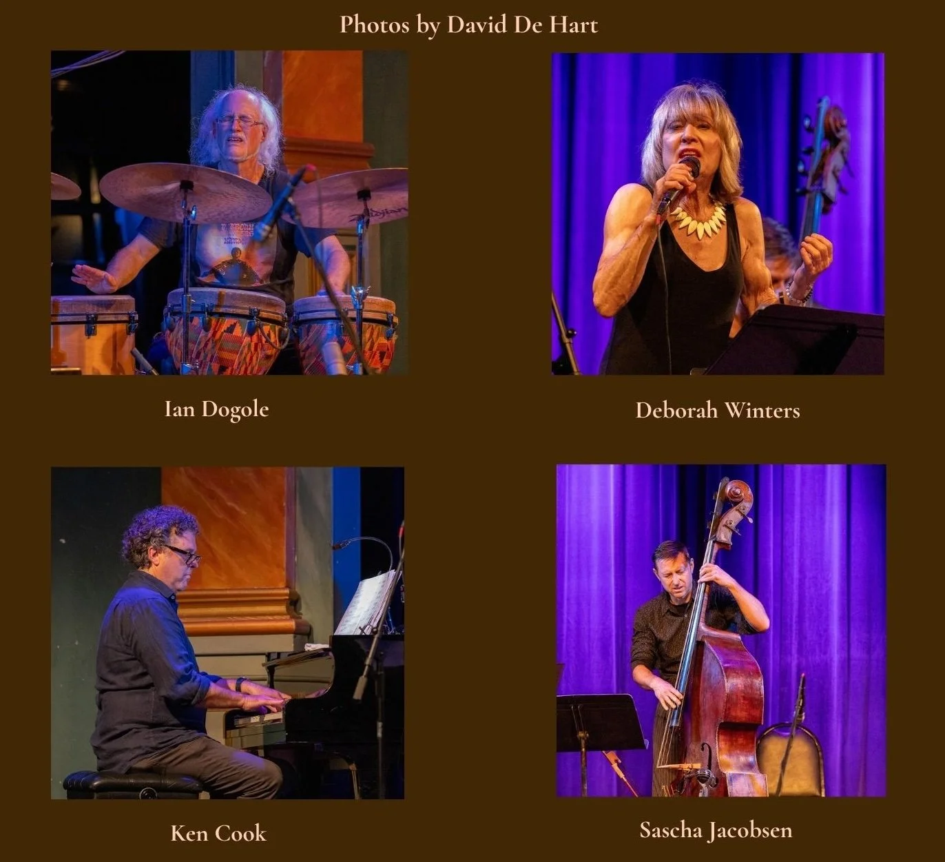 Ian Dogole – Percussion, Deborah Winters – Vocals, Ken Cook -Piano and Sascha Jacobsen – Double Bass